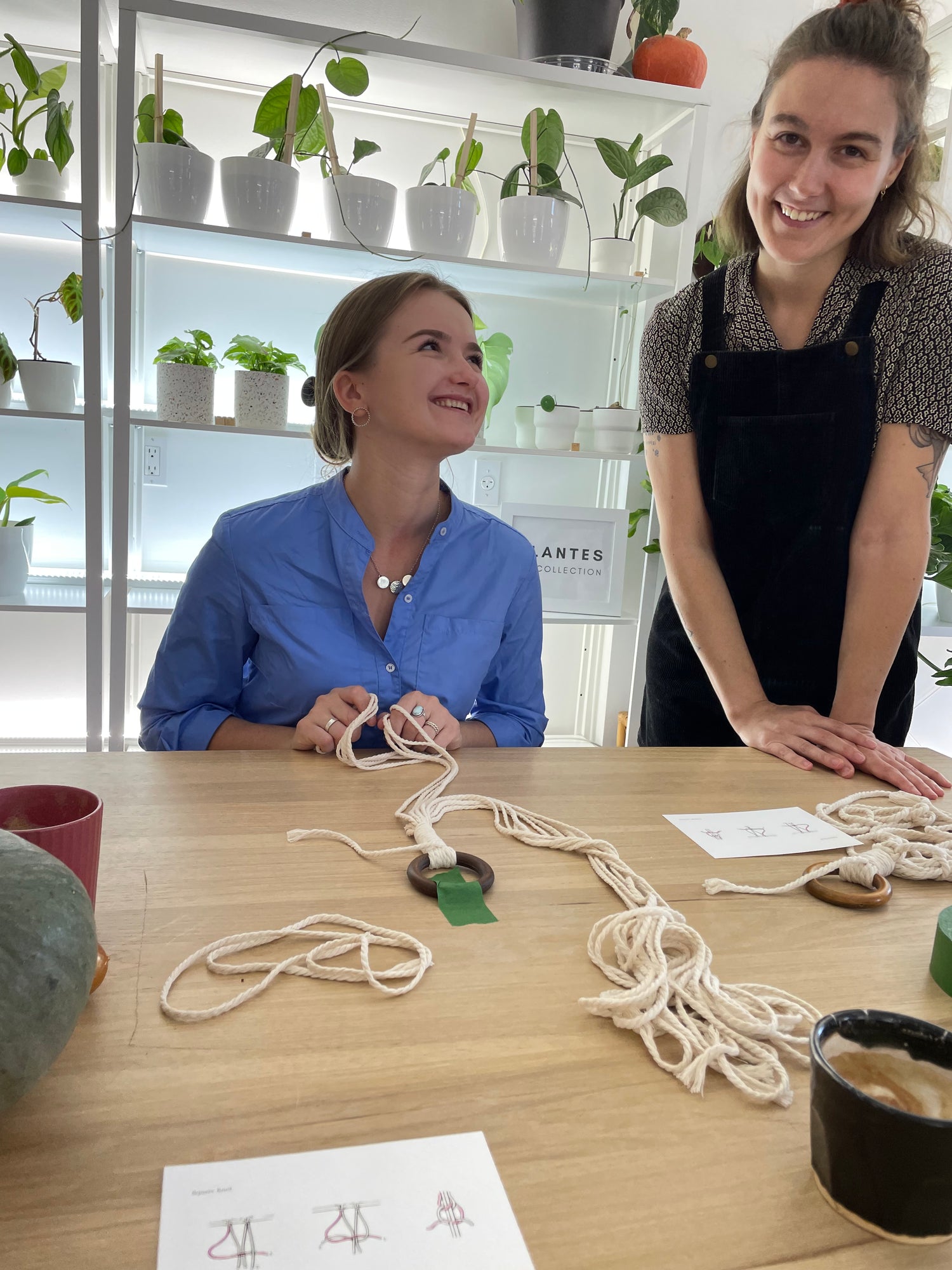 Cet atelier d’initiation au macramé permet d’apprendre les nœuds de base en réalisant une jardinière suspendue. La corde utilisée est faite de coton recyclé (ma fournisseuse recycle les déchets de l’industrie textile) et je fournis des anneaux de bois dénichés en friperie.